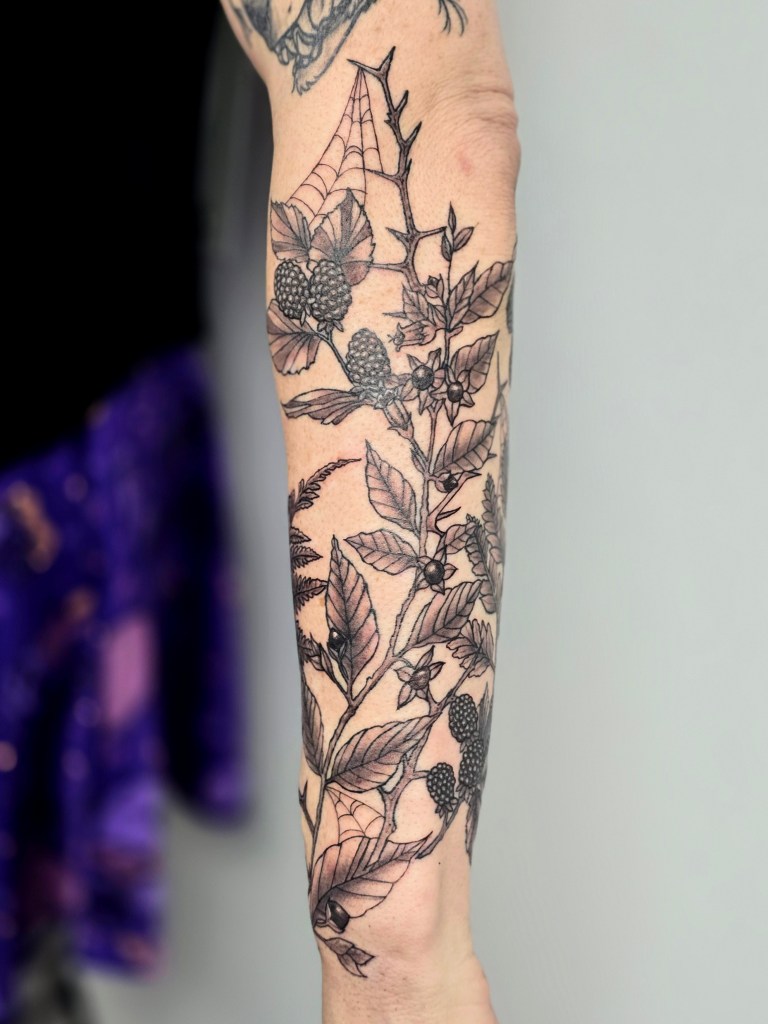 Rebecca is a newly licensed artist, she was apprenticed to Matthew Kahn. She has been a painter and artist for over 10 years, using various mediums, mainly gouache and acrylic. She began her apprenticeship in August 2024 and has loved being able to express her art on a new medium. She is excited to continue her journey in the world of tattooing and to grow her skills. She enjoys all styles but especially loves things that are inspired by nature and the gothic aesthetic.